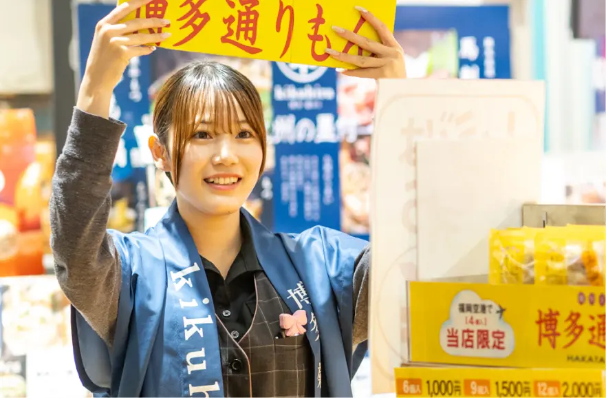1992年創業、福岡空港で「博多土産 by菊ひら」を運営し、2027年秋には同ビル内に2店舗目がオープン予定です。10代~60代まで幅広い世代が活躍し、助け合うアットホームな職場です。離職率が低く、高校生採用開始から退職者は寿退社の1名のみ。多くが正社員として長く働いており、安心してキャリアを築ける環境です。「九州のおいしいものを全国に届けたい」という想いに共感してくださる方を歓迎します。